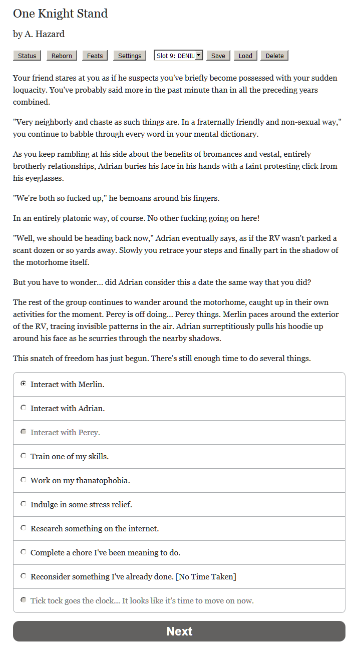 - Platonically or romantically attempt to hang out with everyone onboard the RV. Or just pester them with unending questions & demands. Or pick a fight. Or start shit-stirring. Or…